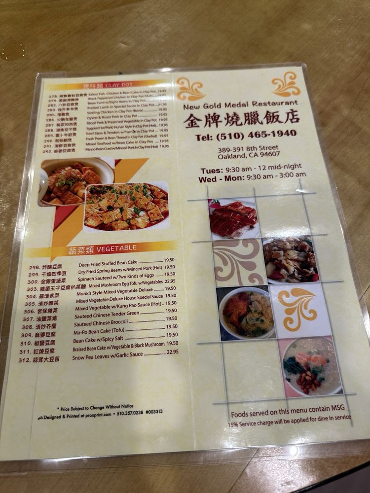 New Gold Medal Restaurant in Oakland Chinatown offers a diverse menu with options for both vegetarians and meat lovers. The restaurant provides many amenities such as takeout, delivery, and outdoor seating. Customers praise the flavorful dishes, including the baked pork chops, egg flower soup, and mixed seafood with bean cake in a clay pot. Reviewers particularly highlight the crispy and flavorful chicken wings and the delicious fried rice. The restaurant's casual atmosphere, good for groups and kids, makes it a go-to spot for Chinese cuisine in the area. With friendly service and a variety of dishes to choose from, New Gold Medal Restaurant is a must-visit for anyone craving authentic and satisfying Chinese food.